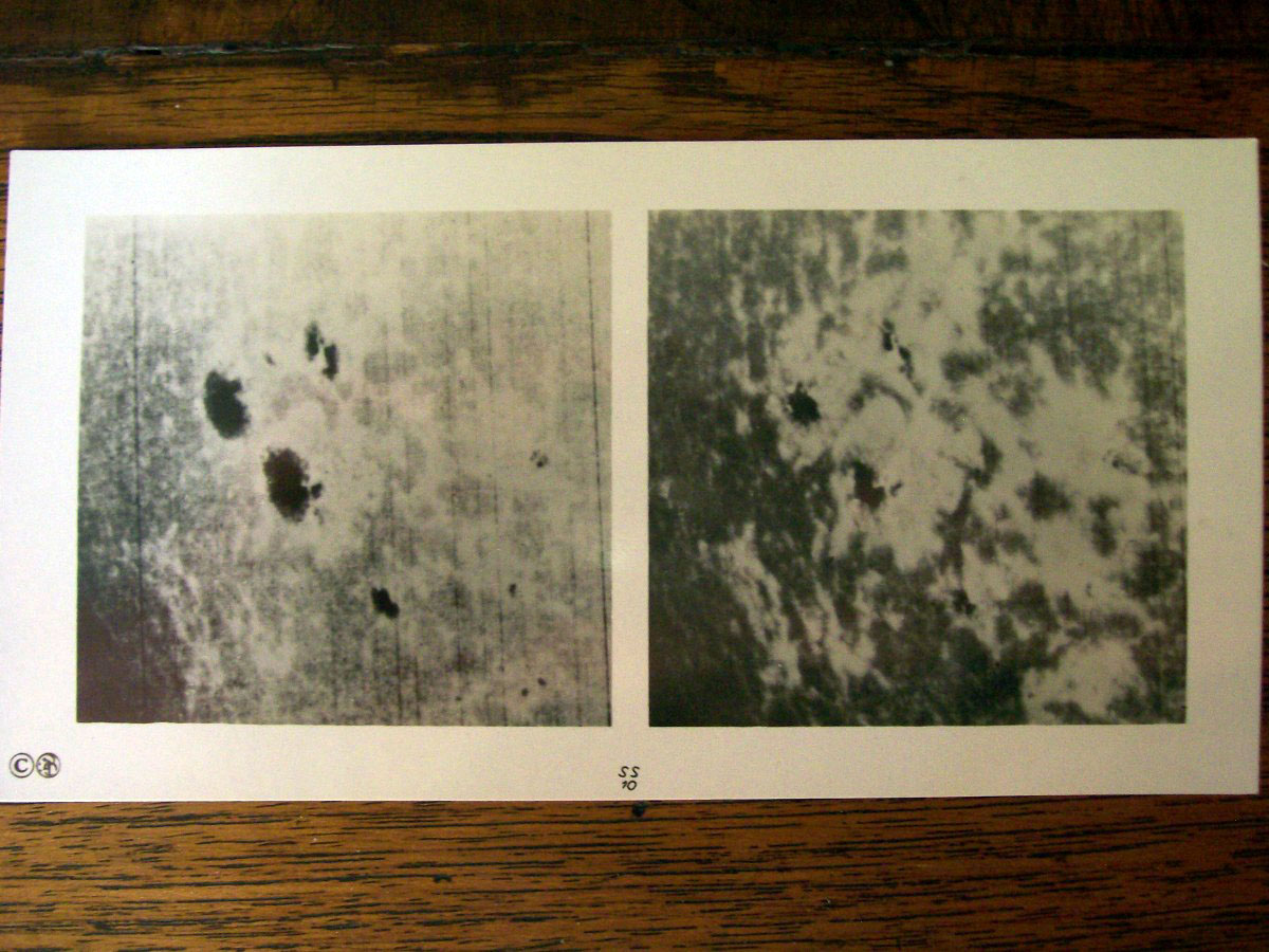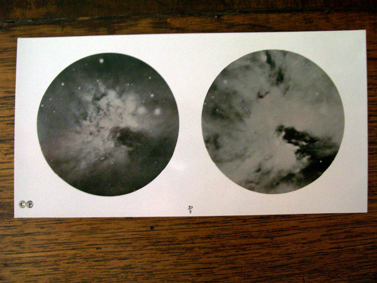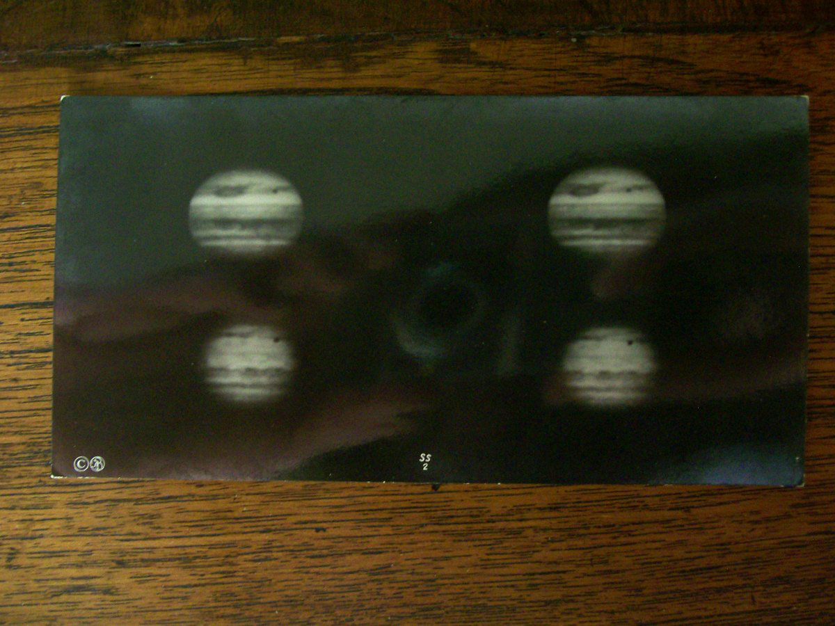 One of the cards appears to be of a minor planet. My first thought is that it might be Pluto but I can't match any known early Pluto images to the images on the card. The other cards are of M31, M42, sunspots, and Jupiter.