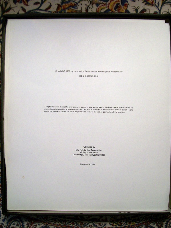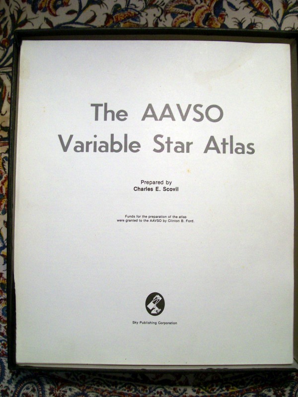 Atlas produced by the American Association of Variable Star Observers. The atlas lists variable stars on the back of each chart. There are 178 charts included in the atlas.