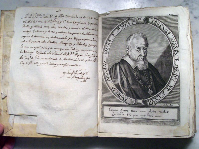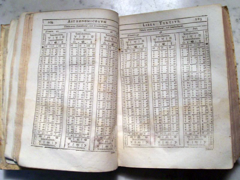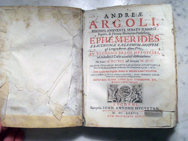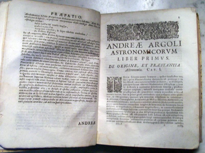 Andrea Argoli was an Italian astronomer, and an avid astrologer (astronomers during this time period were usually also practicing astrology). In 1627 he got into trouble with Pope Urban VIII for casting horoscopes that did not please the Pope and had to leave Rome for Padua. In this volume he calculated the positions of the planets using the Tychonic model of the solar system.