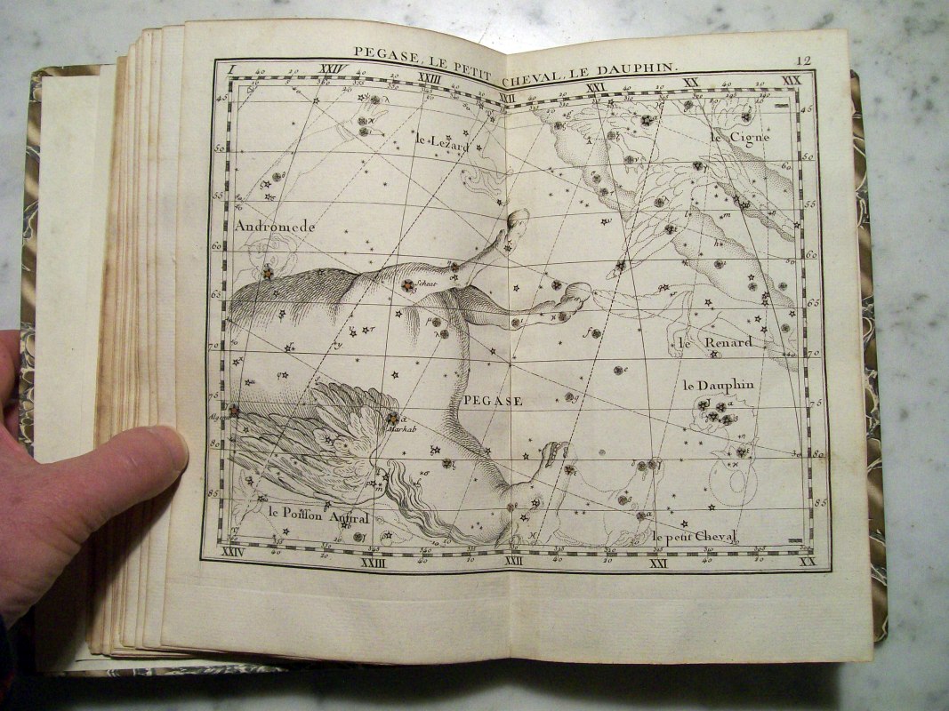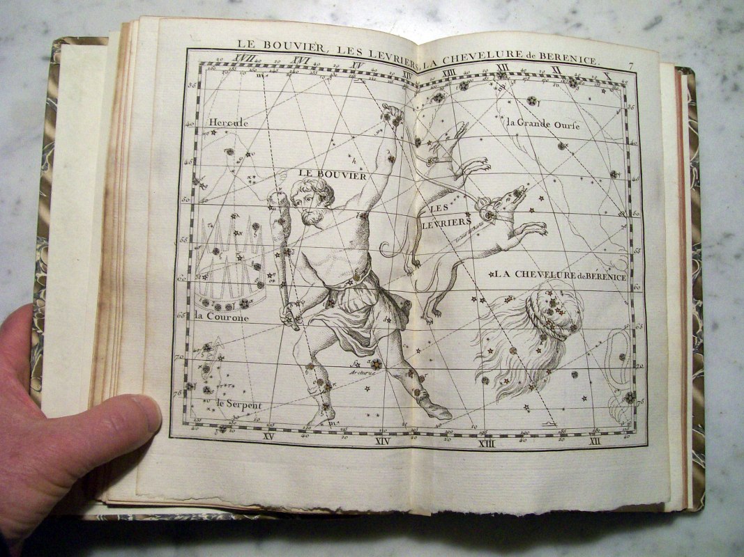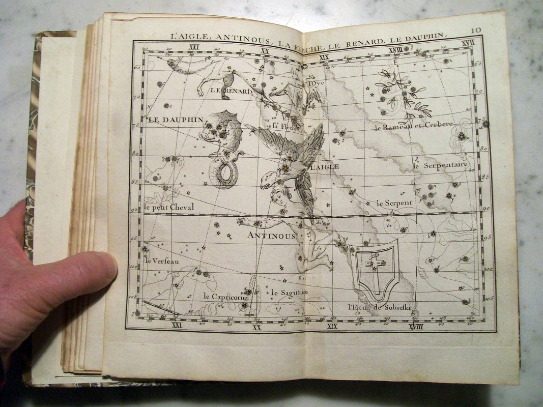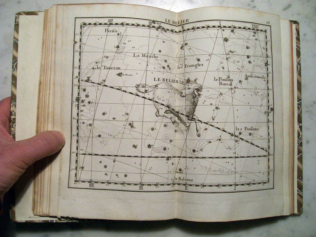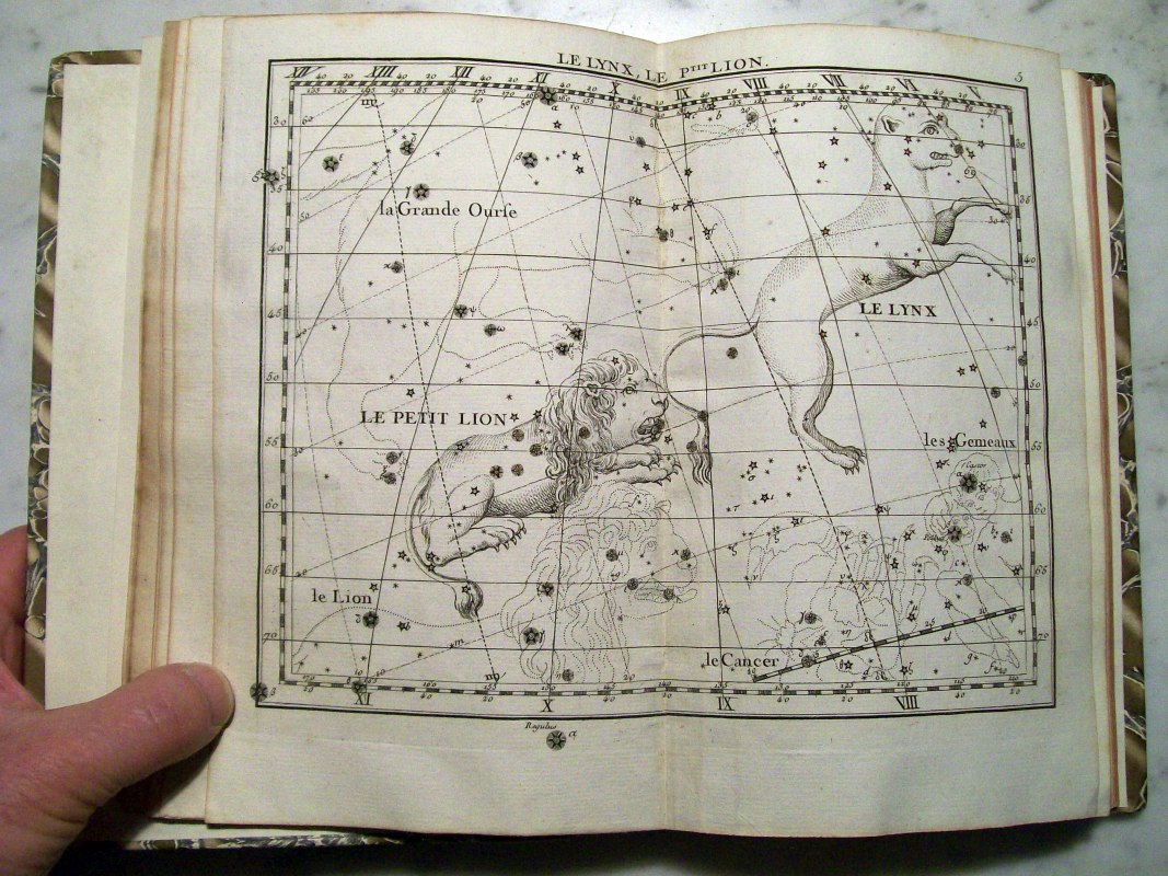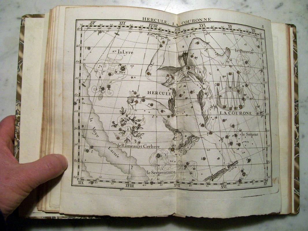 This is the second edition of John Flamsteed's atlas printed in 1776. It was edited by Jean Nicolas Fortin, who was an an artisan and globe maker for the French royal family. This second edition was 1/3 the size of the Flamsteed's original atlas, which was considered too large to be used while observing.