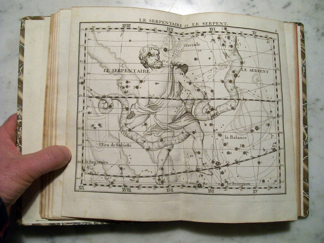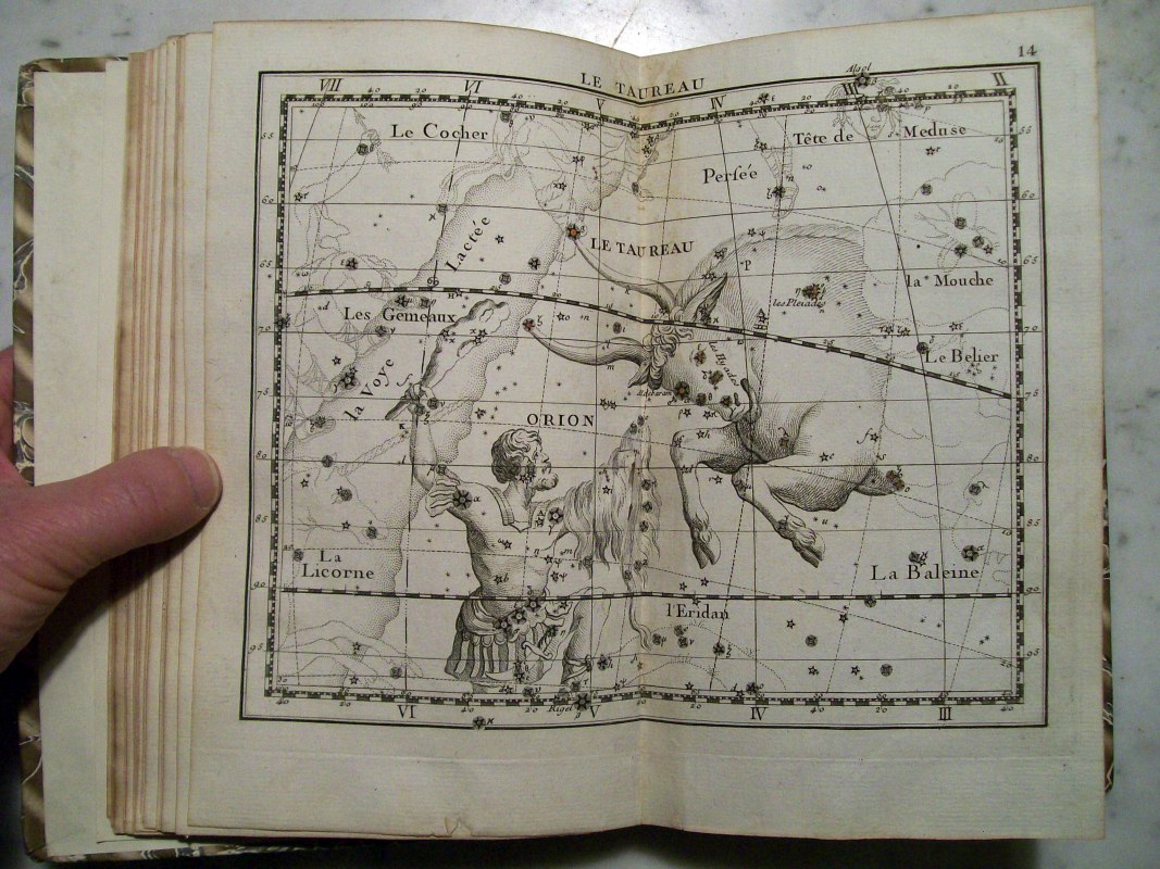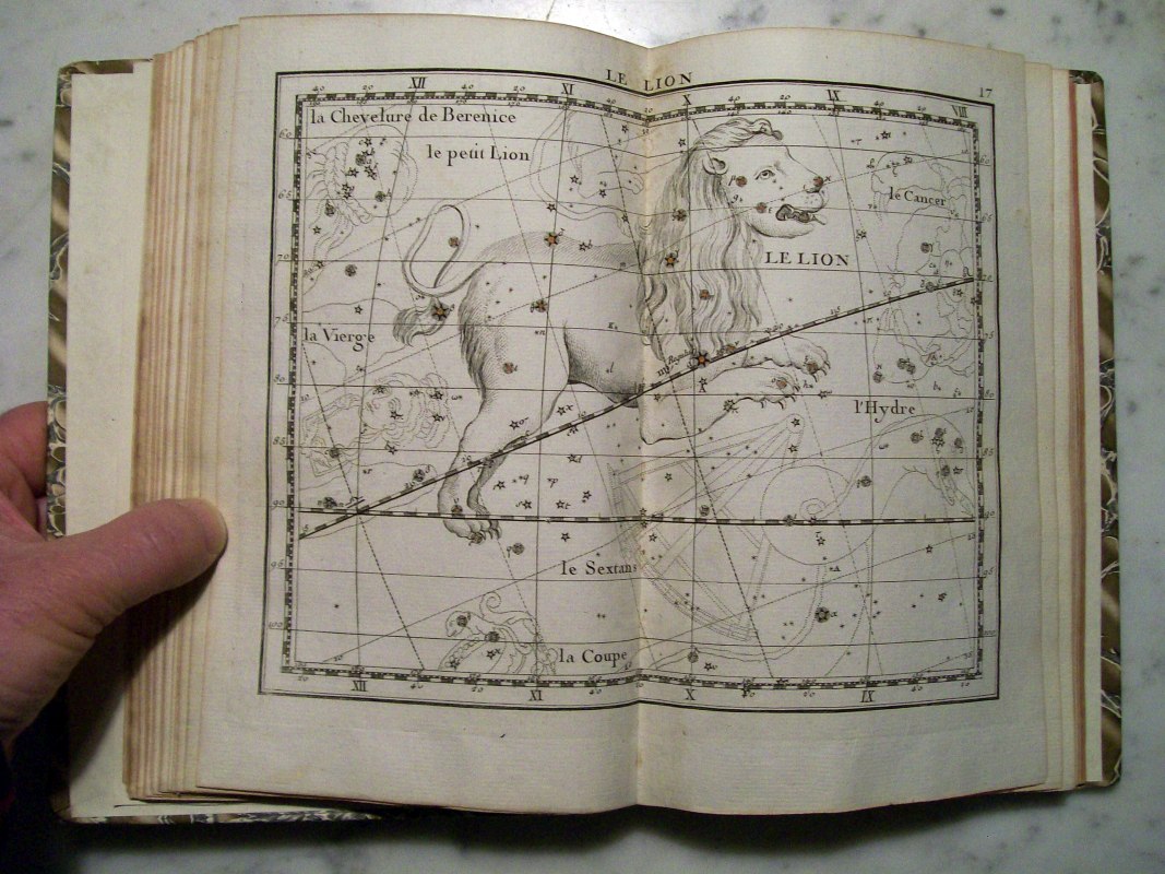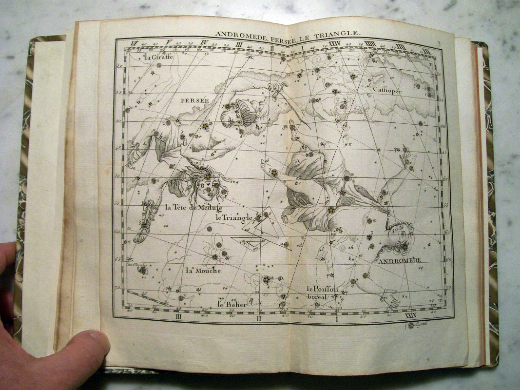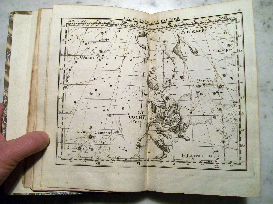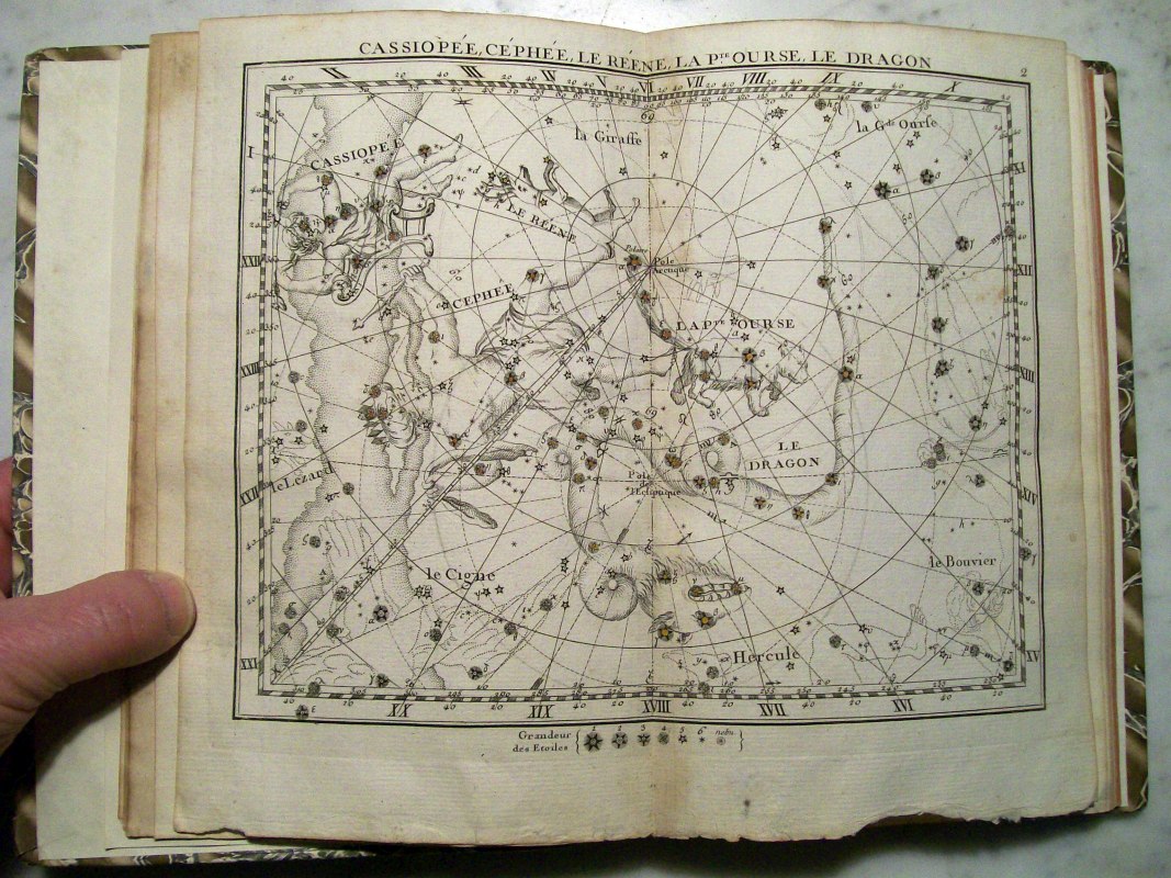 This is the second edition of John Flamsteed's atlas printed in 1776. It was edited by Jean Nicolas Fortin, who was an an artisan and globe maker for the French royal family. This second edition was 1/3 the size of the Flamsteed's original atlas, which was considered too large to be used while observing.
