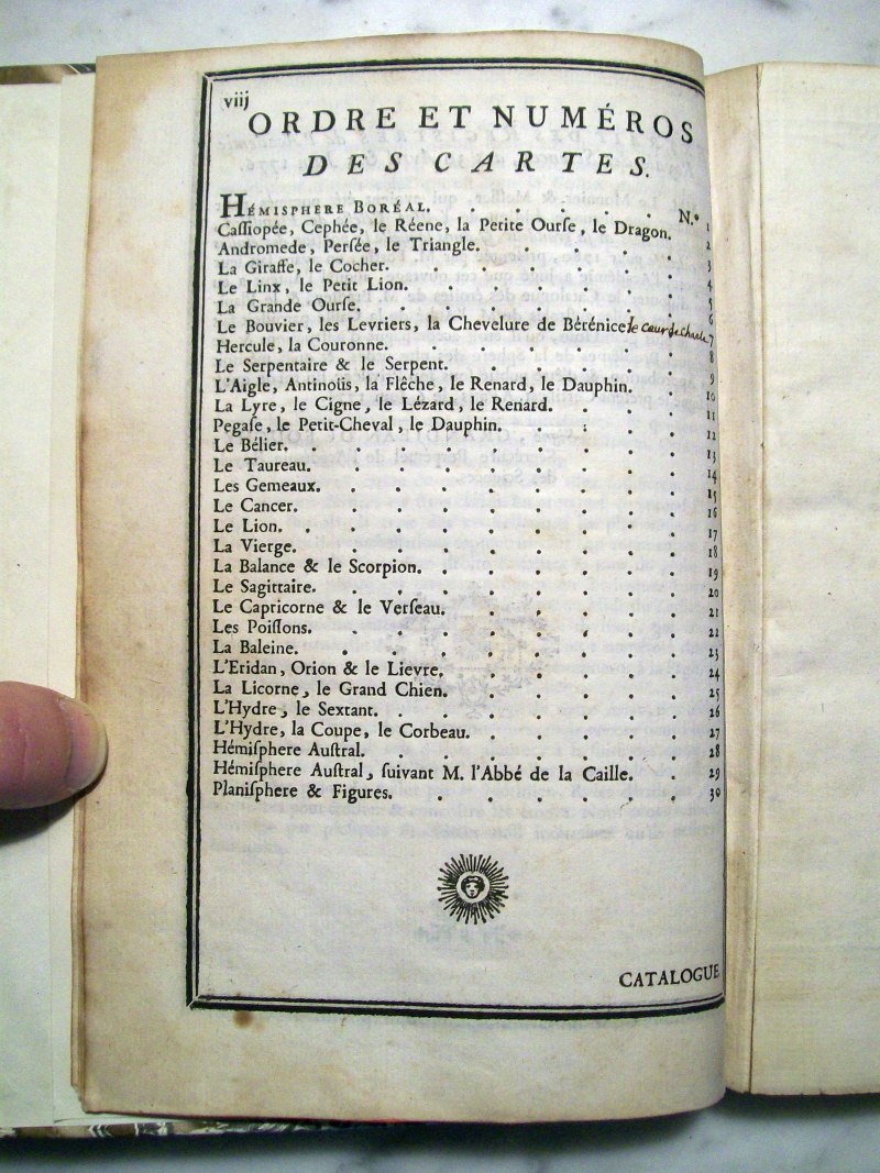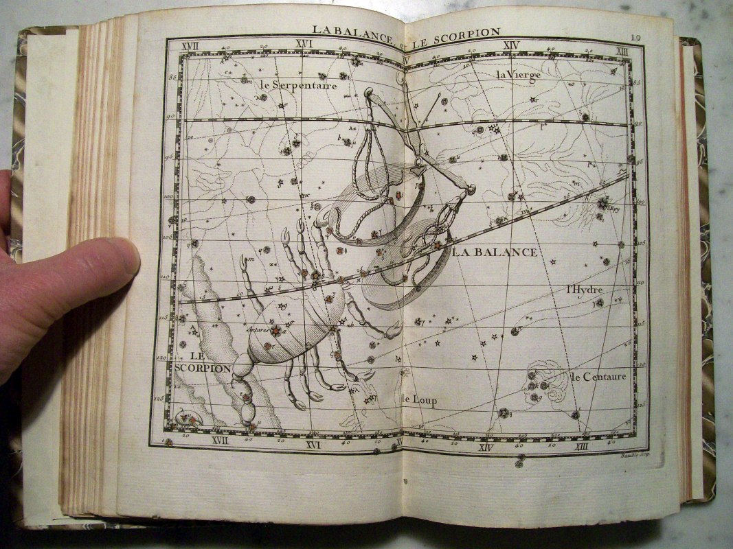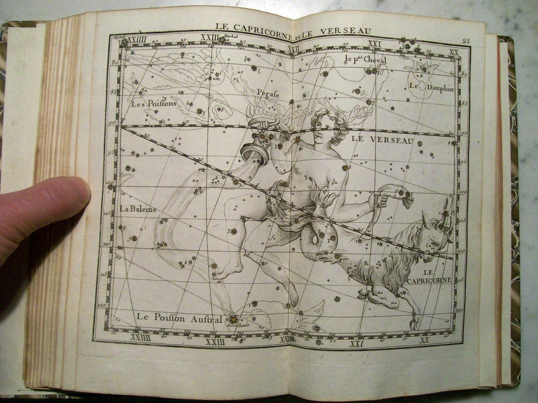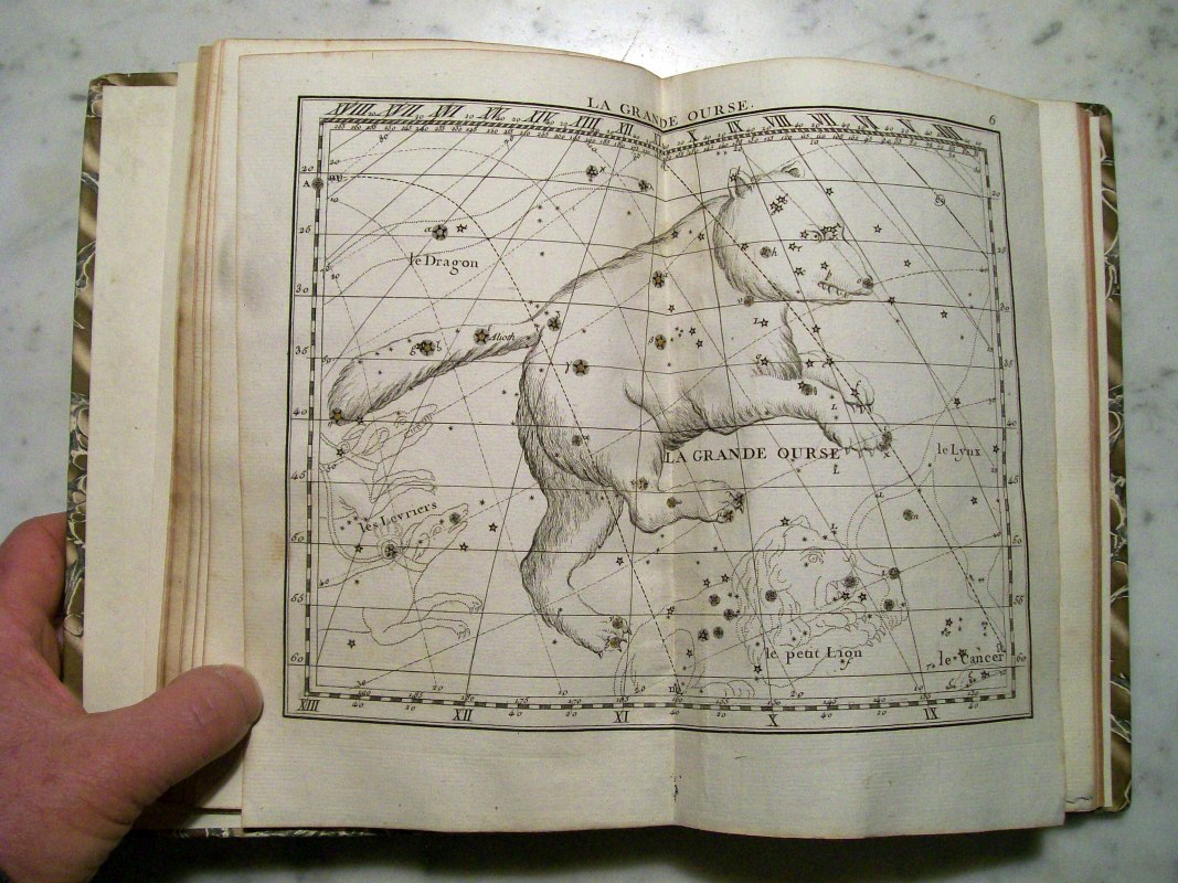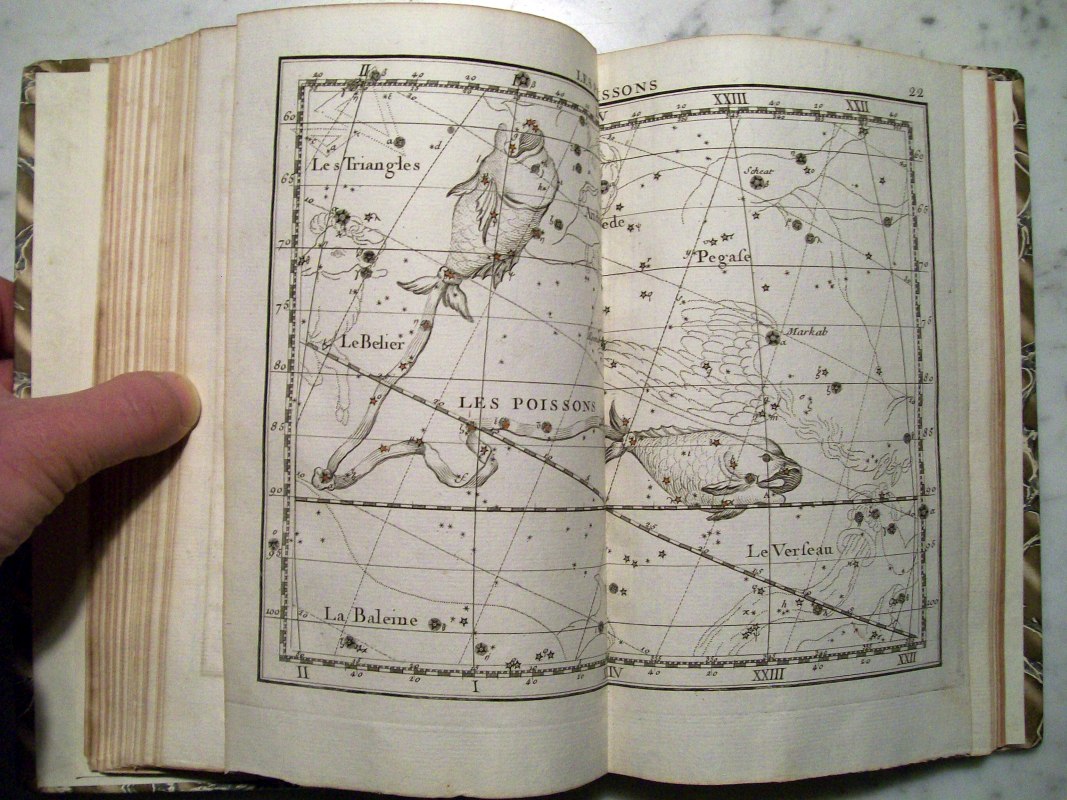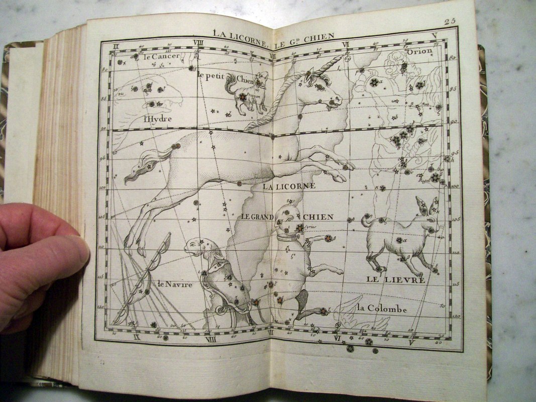 This is the second edition of John Flamsteed's atlas printed in 1776. It was edited by Jean Nicolas Fortin, who was an an artisan and globe maker for the French royal family. This second edition was 1/3 the size of the Flamsteed's original atlas, which was considered too large to be used while observing.