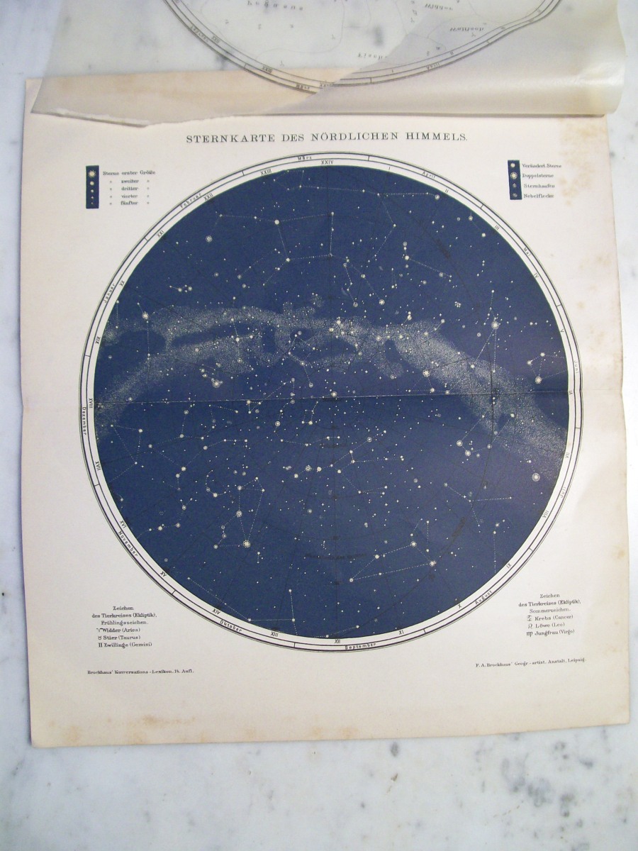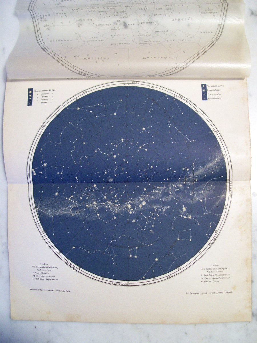 Brockhaus Konversations Sternkarte des Himmels circa 1900