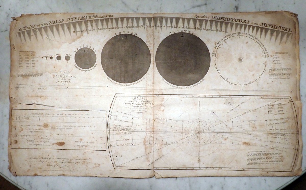 The 1836 edition was the last edition of Burritt's atlas that was published before his death in 1838. This copy has a couple of issues, the first of which are the torn pages. Every page has at least one tear, which I think I can address by applying wheat paste to the page fibers exposed along the tears and pressing between wax paper, one tear at a time. I have done this with another book that had severely torn pages and the technique works very nicely. The other issue is that the atlas has water staining and the pages are rather stiff.