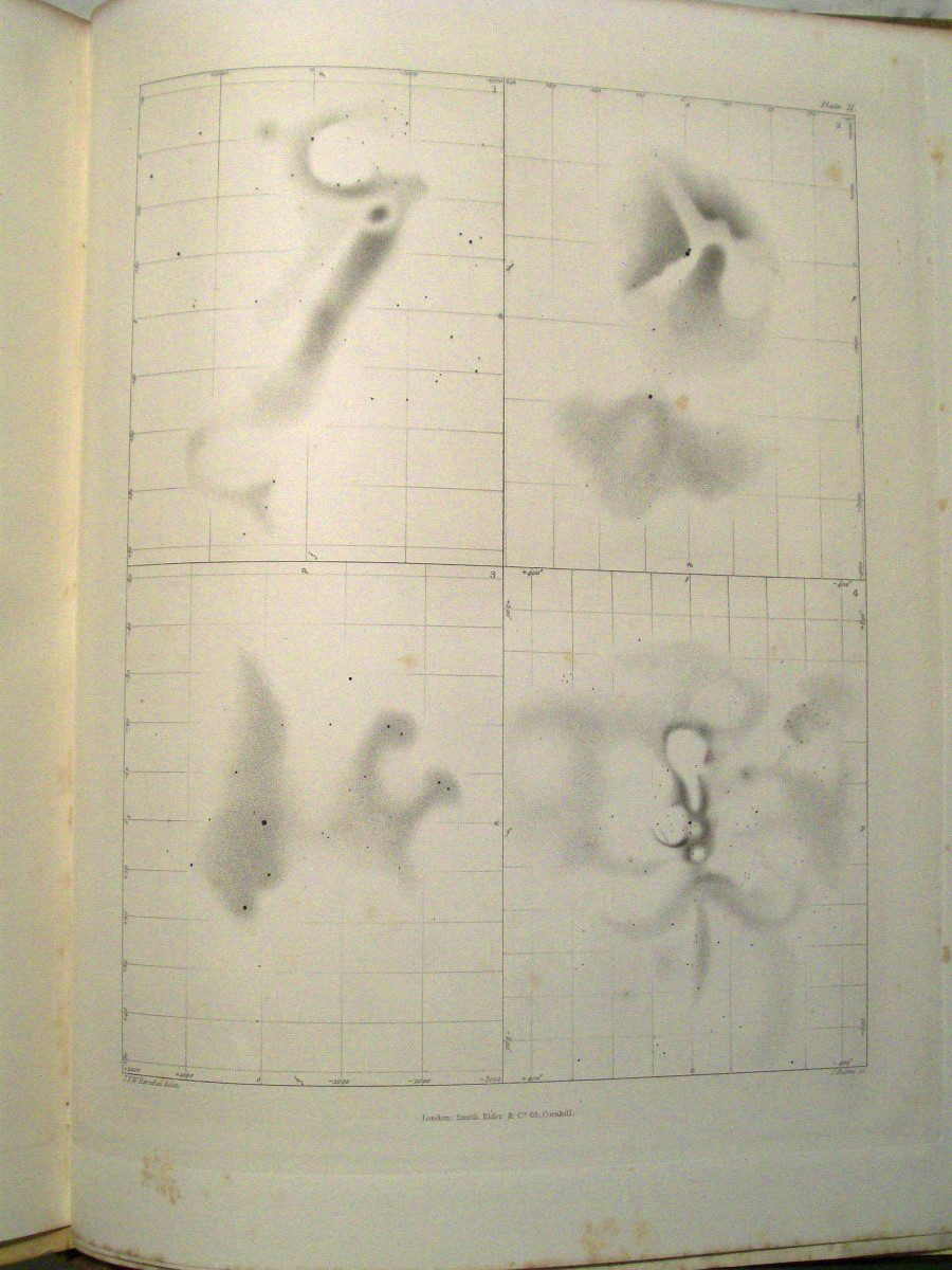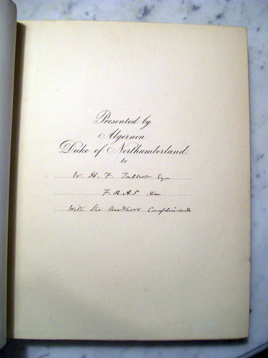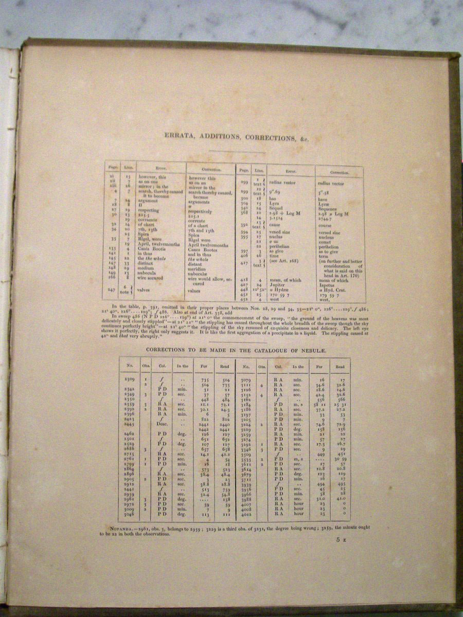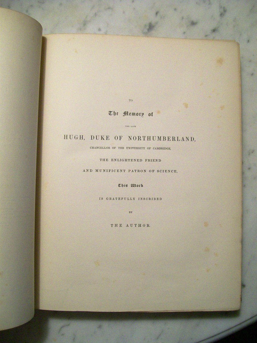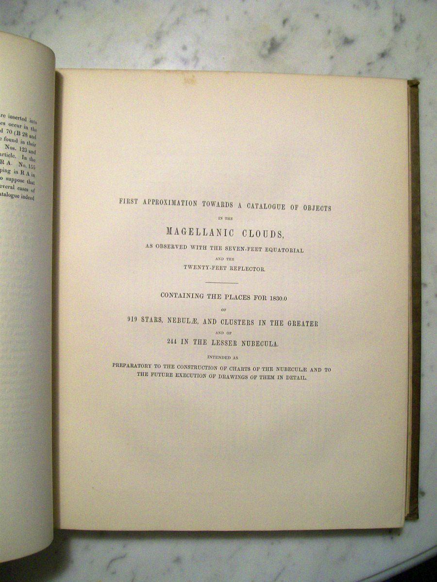 Here is John Herschel's most substantial work, which is a compilation of the results of his astronomical observations made at the Cape of Good Hope in South Africa during the time period between 1834 and 1838, and was published in 1847. This is a presentation copy that was given to Henry Fox Talbot, who along with John Herschel was one of the pioneers of photography, which makes this a rather special copy. The objective of John Herschel's work in South Africa was to complete the catalog of nebulae and star clusters that was started by his father William Herschel.