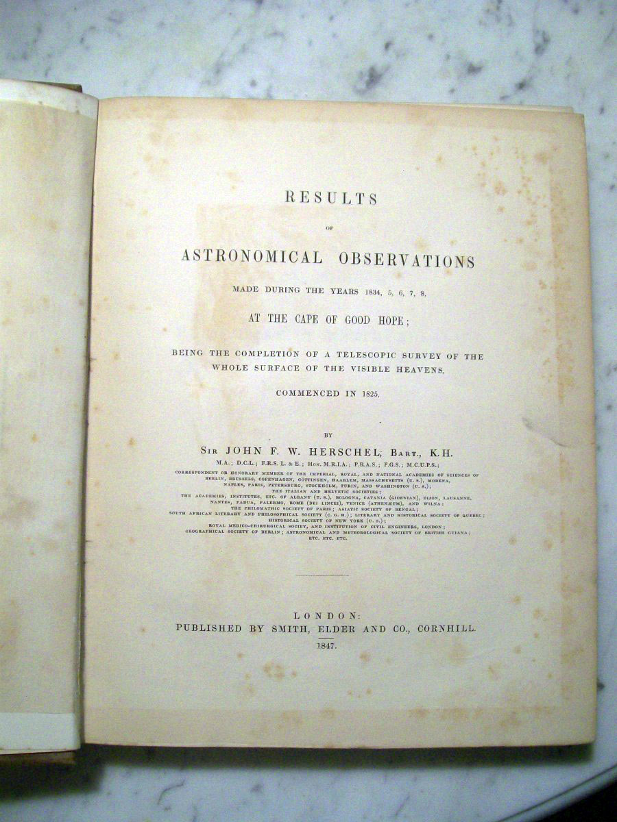 "Results of Astronomical Observations Made During the Years 1834, 5, 6, 7, 8 at the Cape of Good Hope" by John Herschel 1847