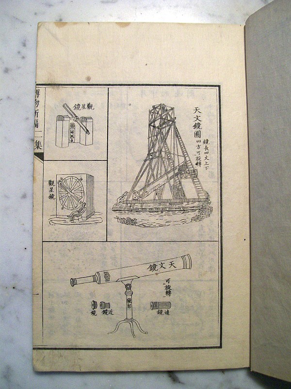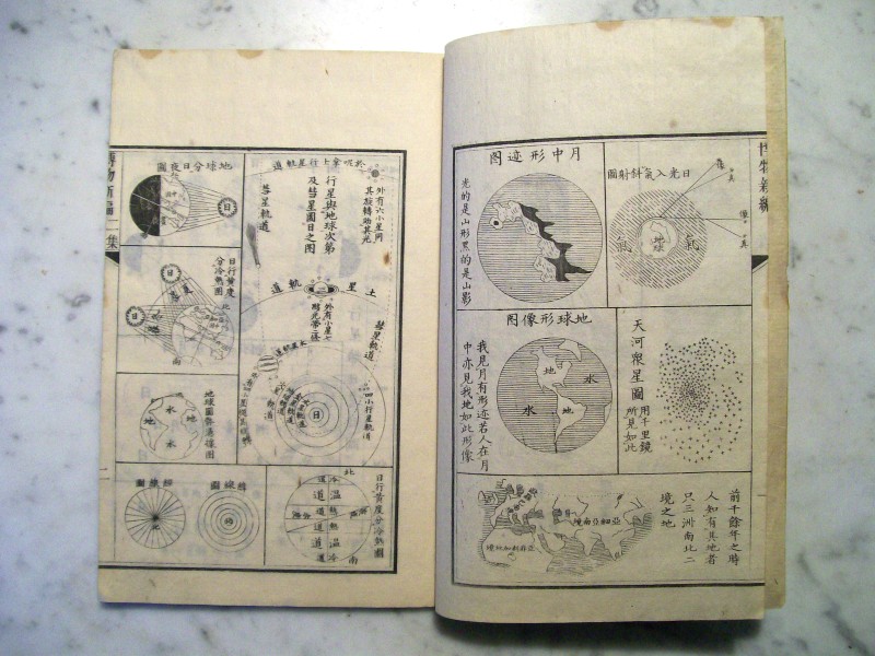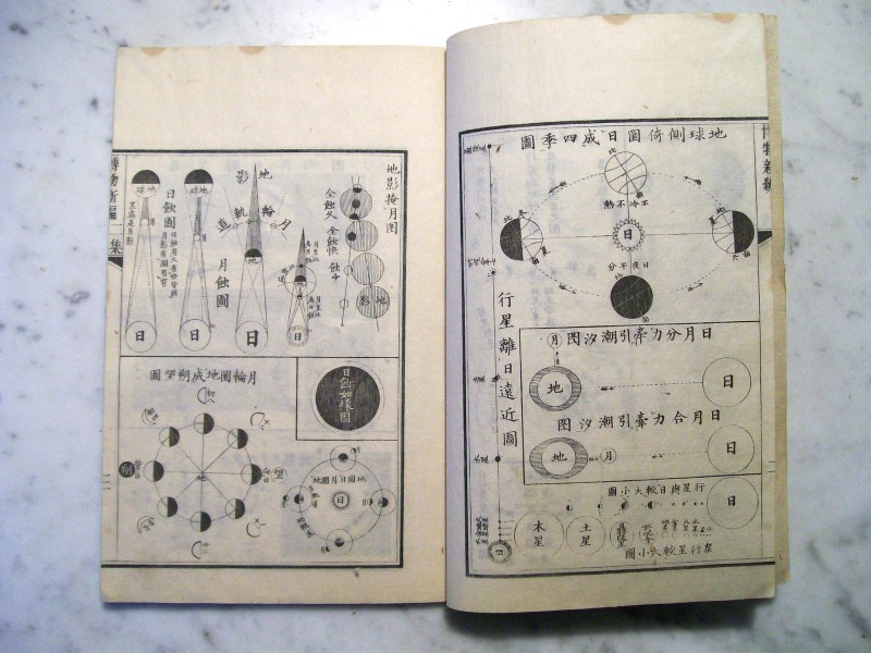 Japanese woodblock print book. Volume 2 of 3 volume set of science books written by the missionary Benjamin Hobson.