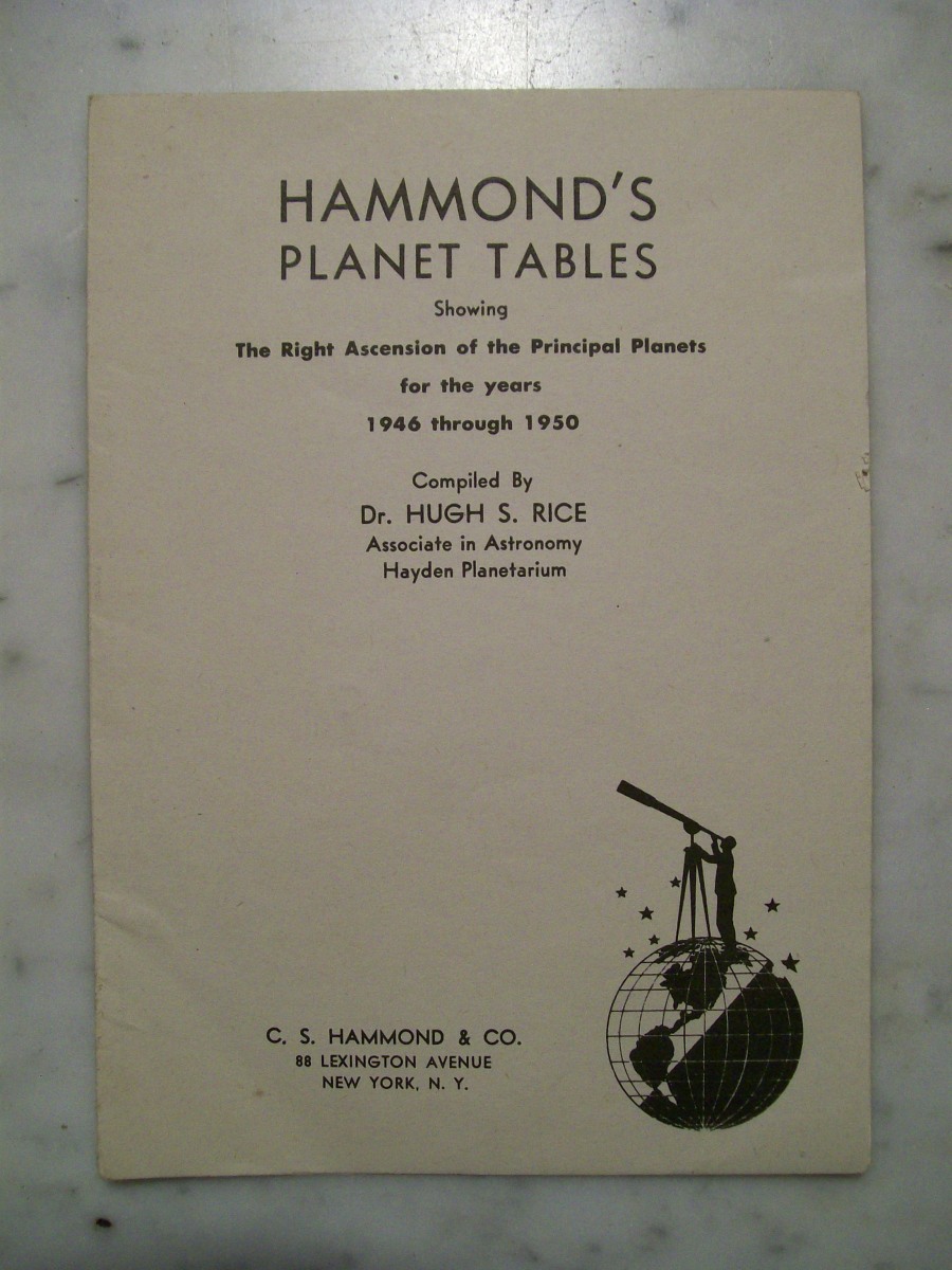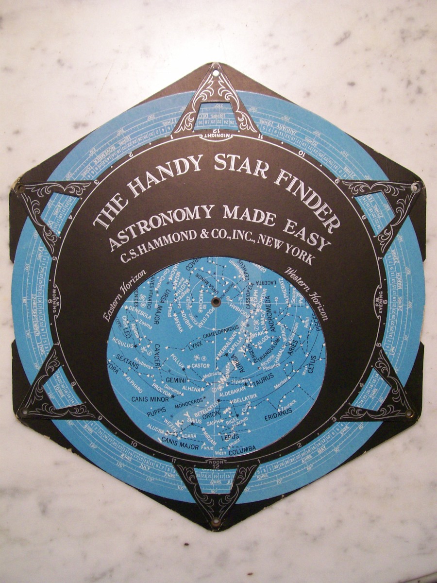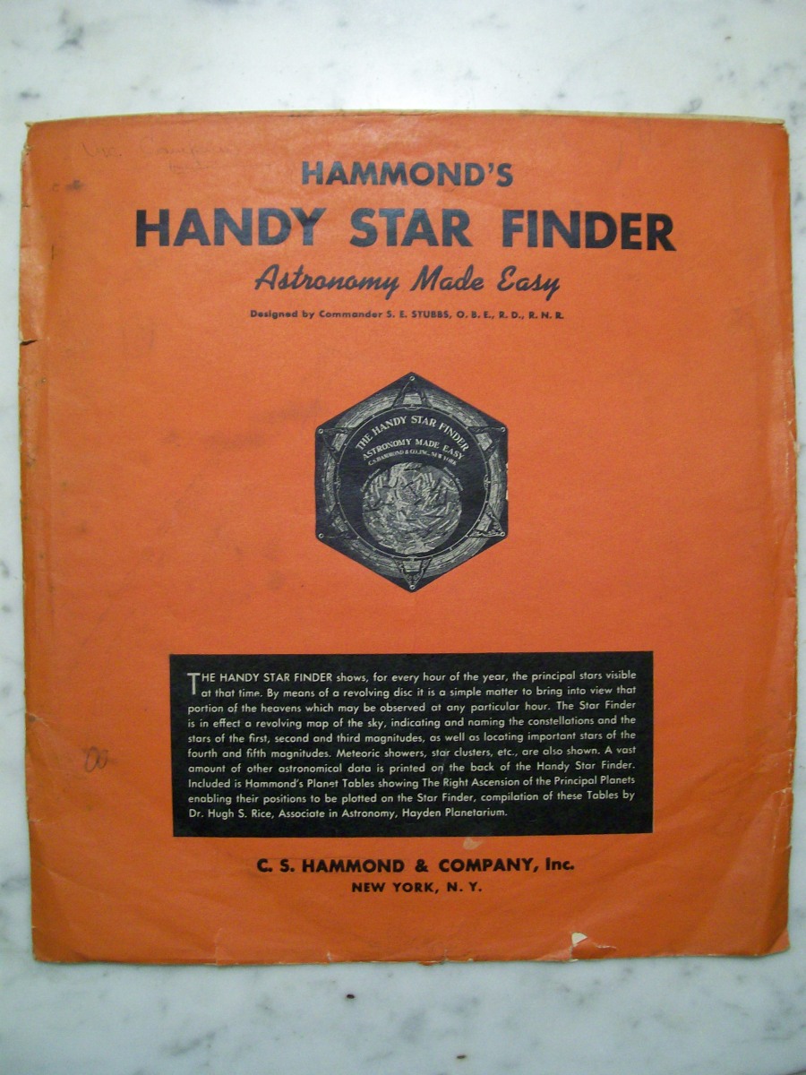 This star finder was published by C.S. Hammond & Company Inc. of New York. The star finder came in an envelope and was accompanied by a table of planet positions which are shown here.