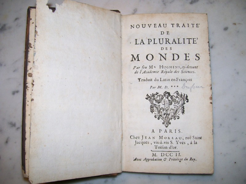 "Nouveau Traite de la Pluralite des Mondes" by Christiaan Huygens - 1702