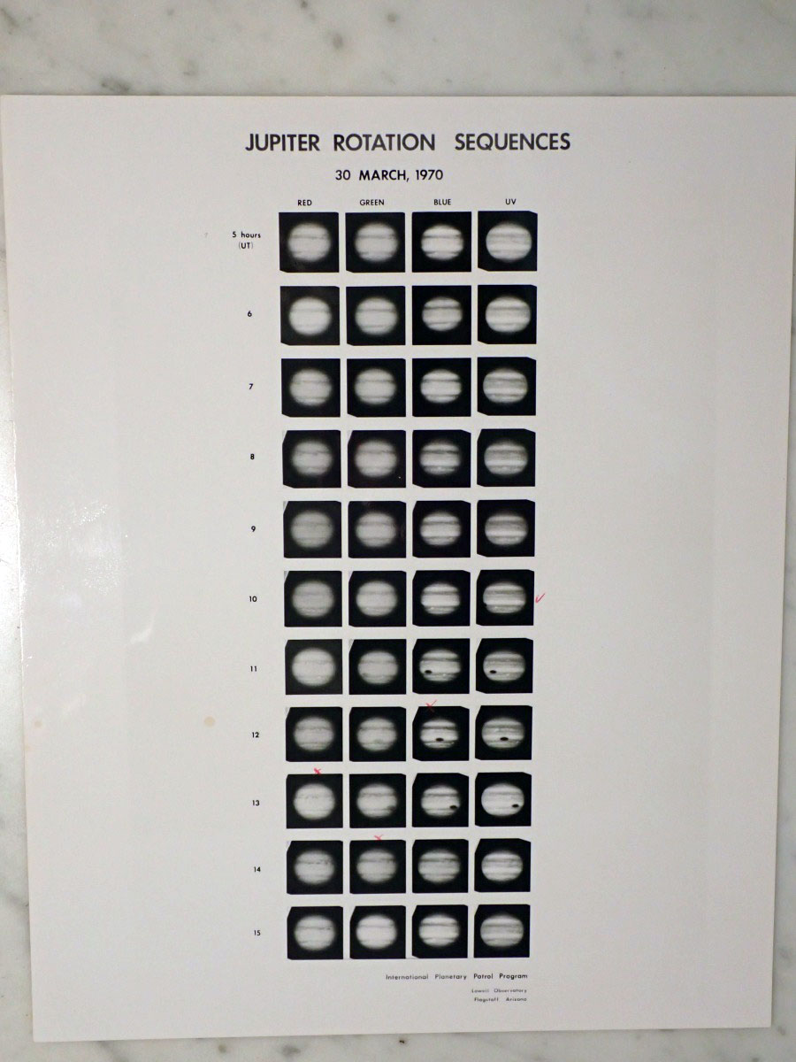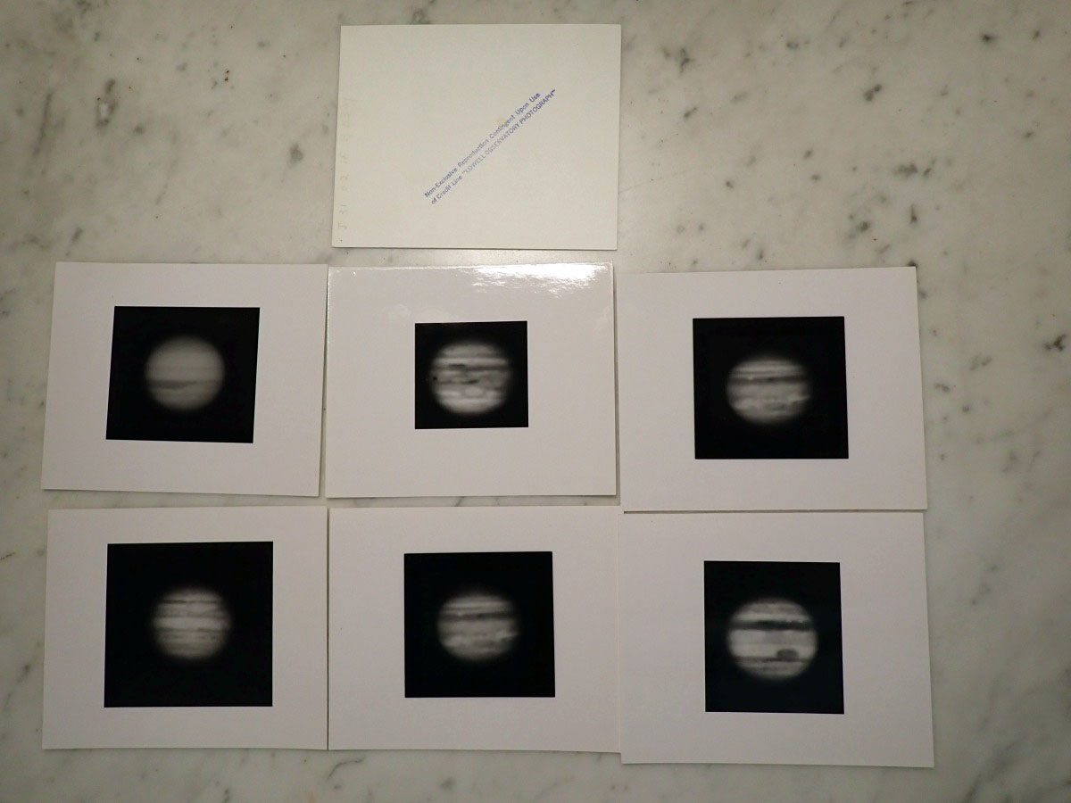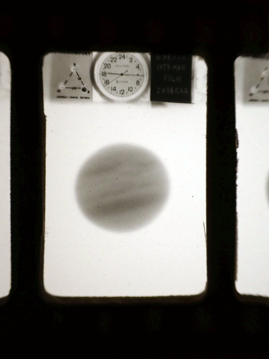 Here are some silver prints of Jupiter that I recently acquired from the NASA International Planetary Patrol Program that were taken at the Lowell Observatory, and some original 35 mm negatives from the San Vittore Observatory near Bologna, Italy. The San Vittore Observatory participated in the Nasa program from 1975 to the program's conclusion in 1981. The attached link describes the observatory and shows the camera used in taking the 35 mm images. I have included a closeup of one of the frames that shows identifying information that was exposed onto the film which gives the date on the right hand side, time from a Bulova watch in the center, and the program name on the left. The paper holder for the film has the observatory name and the Julian date. Most of the single silver prints have the Julian date of the photograph printed on the back of the prints. San Vittore Observatory
