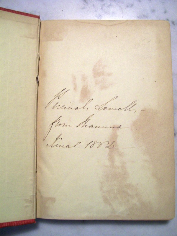 It is possible that the book belonged to Percival Lowell. The book is inscribed: "Percival Lowell from Nanna Xmas 1862".