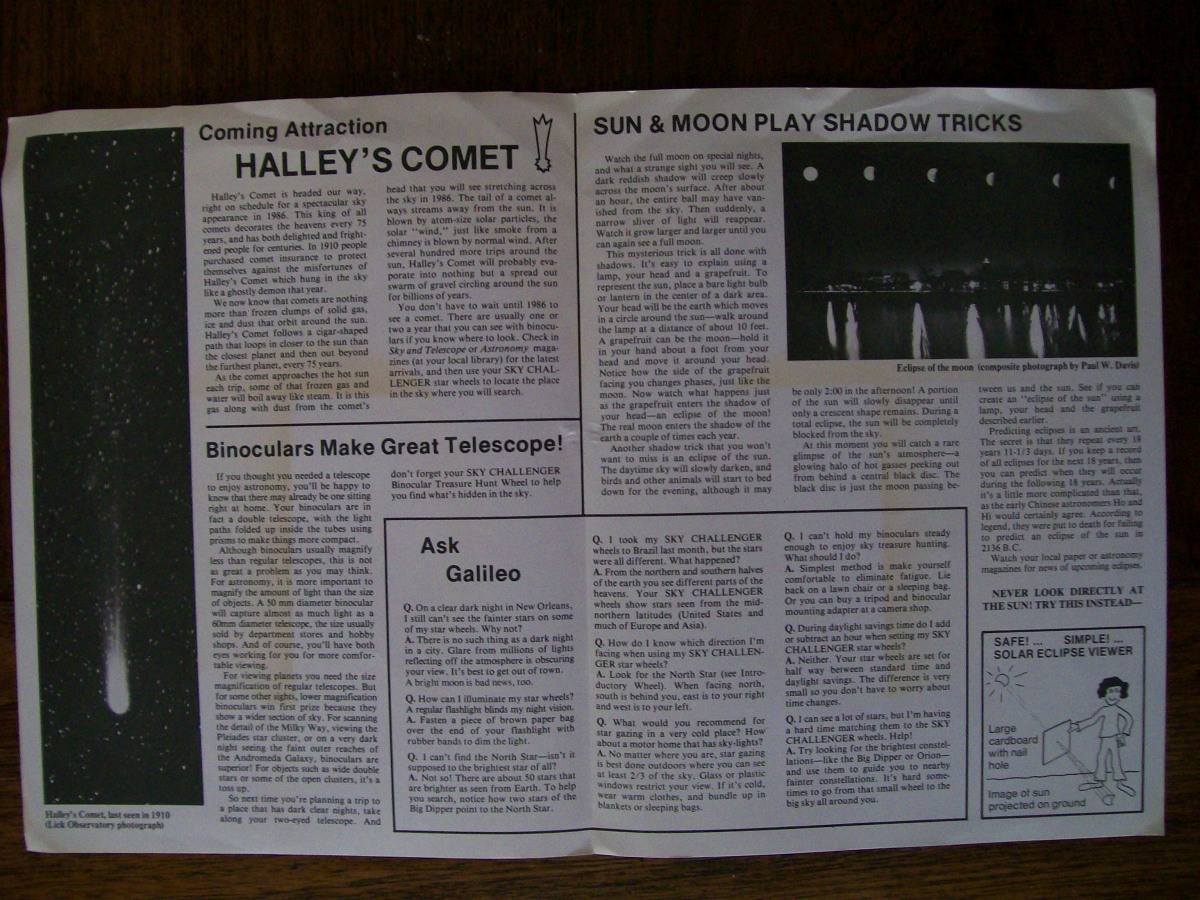 It came with six different wheels that are all present here. Each of the wheels was intended as a different activity. I also have a star clock and a newsletter that was produced by the same group.