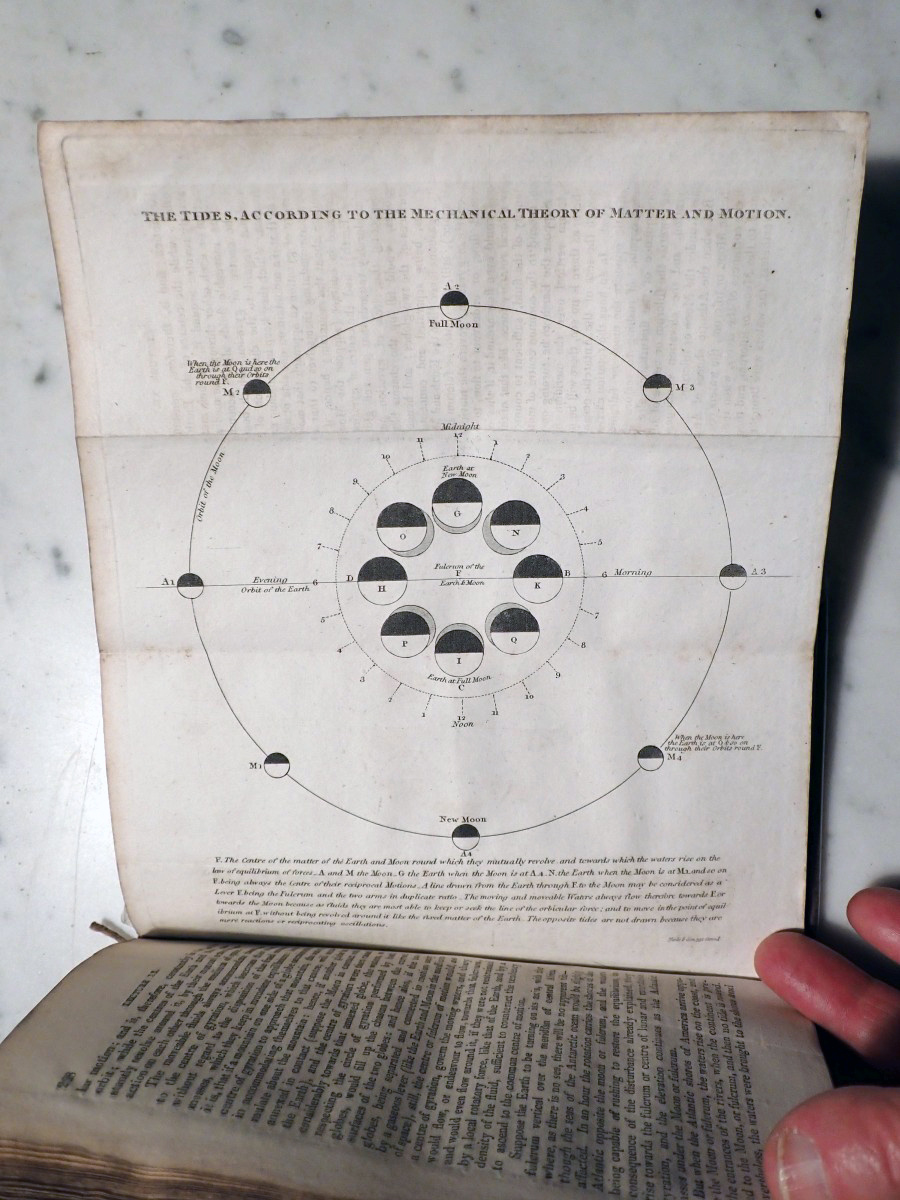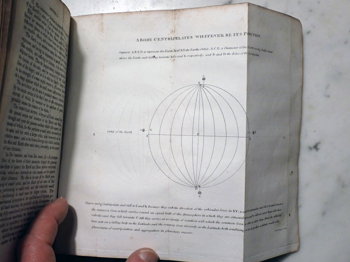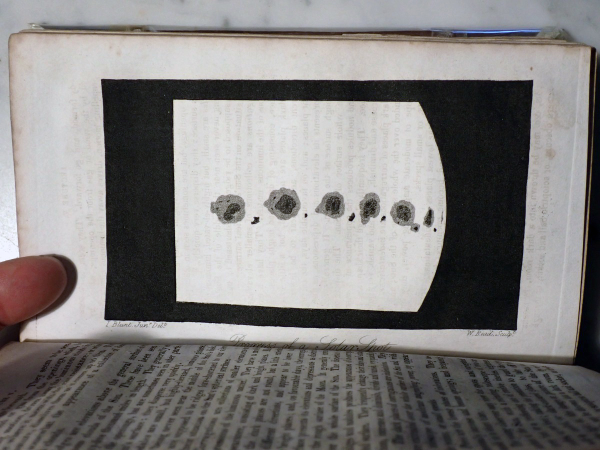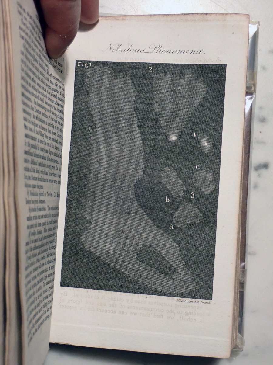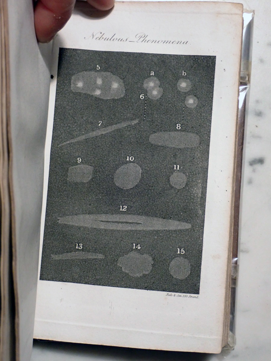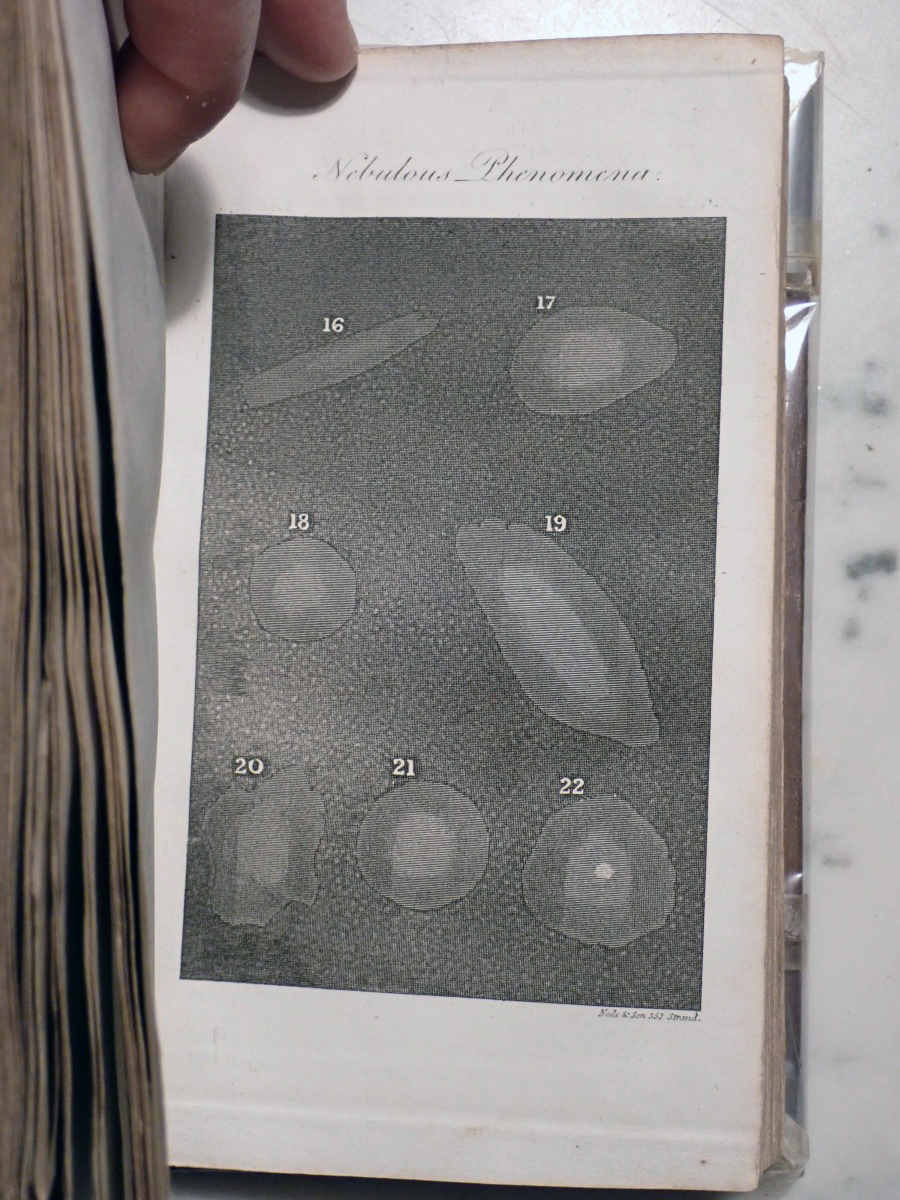 When I acquired this book I posted images of the plates on the Vintage Astronomy Books Facebook group and Bob McNaught noticed that I did not have the two foot long plate of the relative sizes of the planets that his 1821 edition has. The total number of plates in my copy is 47 and his copy has 51 plates. At first we thought that my copy had lost some of its plates over the years but when I checked the section of my copy that describes the plates there was only 47 plates included with my copy. The same section of Bob's copy describes 51 plates. We then looked at the errata at the end of my book and Bob found that his copy has all of the corrections described in the errata of my copy. So it turns out that there were at least two editions published in 1821, but the author, who was also the publisher, did not indicate that they were different editions. My copy appears to be the earliest known version of the 1821 edition.