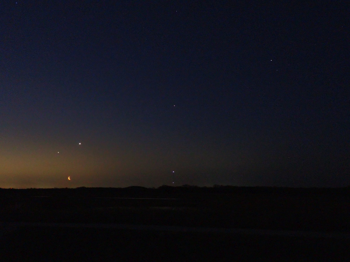 Evening conjunction between the crescent Moon and Venus. Olympus TG-6 Digital camera, ISO 6400, 1/8 second exposure.