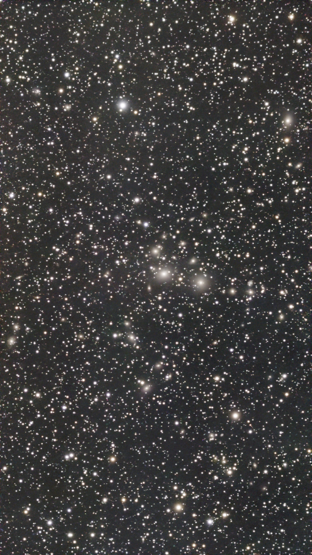 The Perseus Cluster of galaxies with 118 galaxies identified using the galaxy annotation script in Siril. The cluster is located about 225 million light years away. This image consists of 104 sixty second exposures using my Seestar S50 in equatorial mode. Post processing was done in PixInsight and the galaxy identification script in Siril.