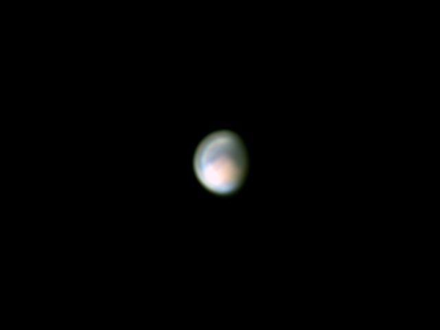 Camera settings: 30 millisecond exposure, and gain: 259. The video resolution was set to 640x480. Binning was set to 1x1. 6000 out of 13248 frames stacked. Seeing was average (~3 out of 5). The angular diameter of Mars was 12.0".