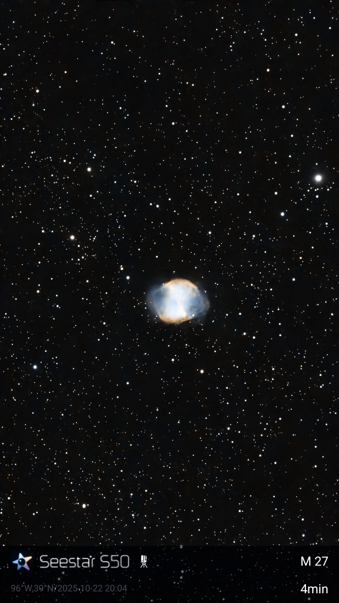 Oct. 22, 2025. M27 (Dumbbell Nebula)