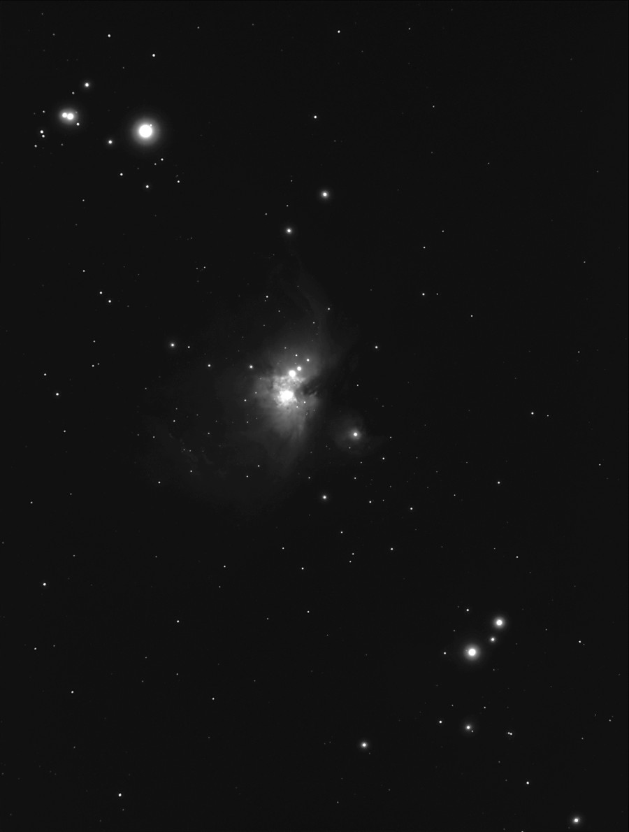 Oct. 15, 2010. M42 (Orion Nubula) photographed with a Watec 120N integrating CCD camera, Meade LXD55 8 inch SCT with a 0.5 focal reducer. 145x256 frames stacked.