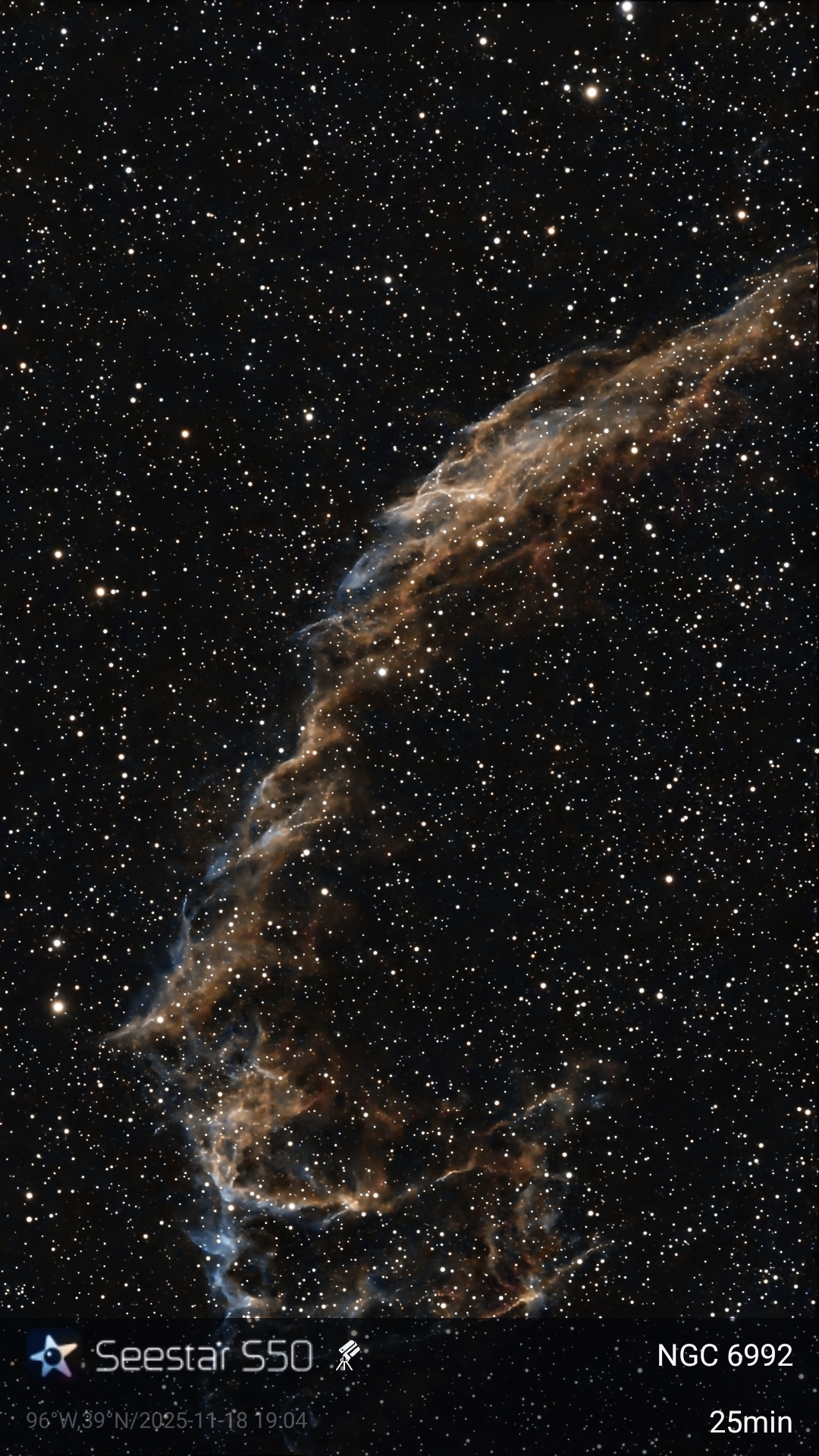 Nov. 18, 2025. NGC6992 (Veil Supernova Remnant)