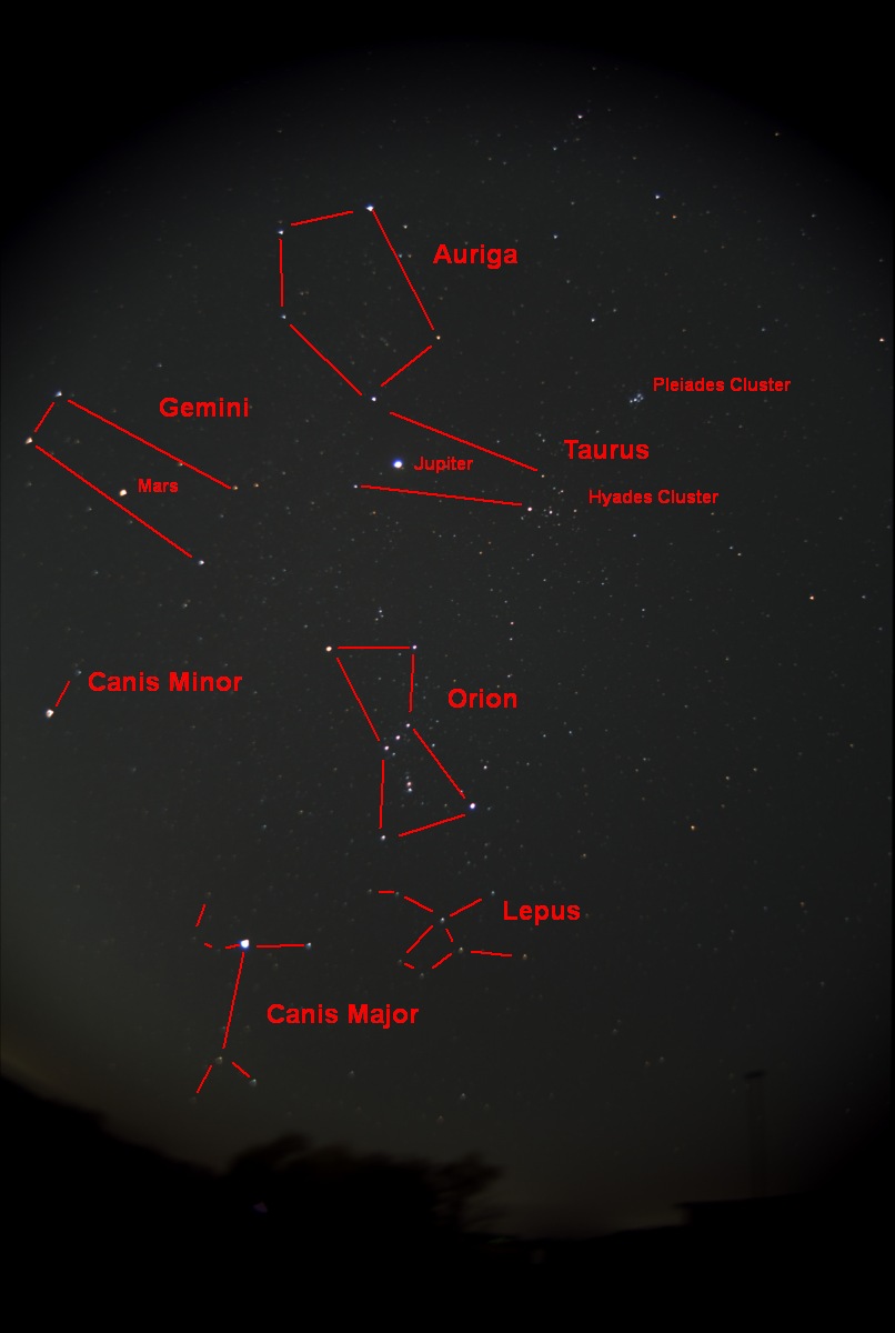 Photograph of the constellation Orion. This photograph was taken from the Baker Wetlands Discovery Center parking lot.