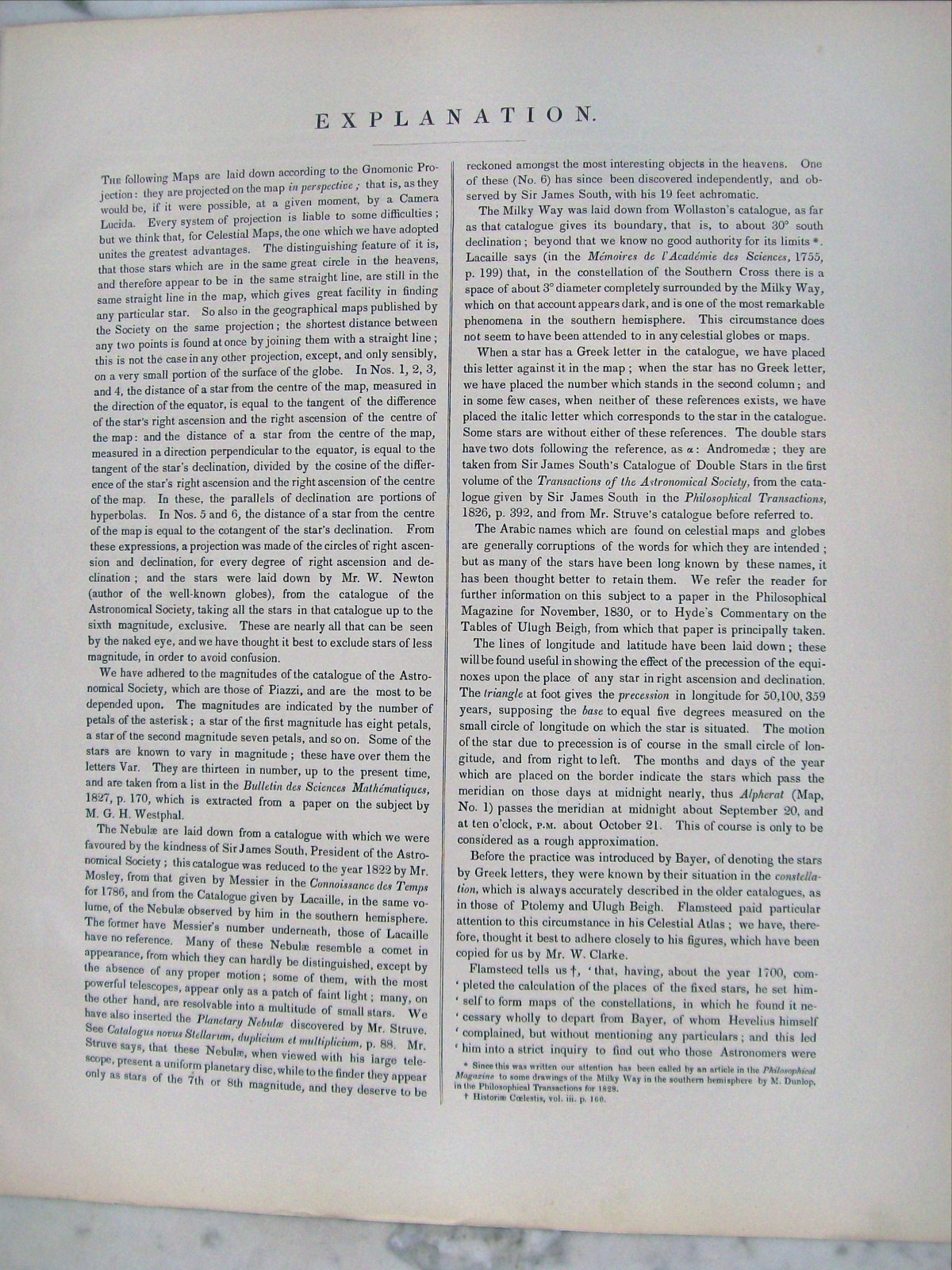 Six unbound star charts and an explanation page.